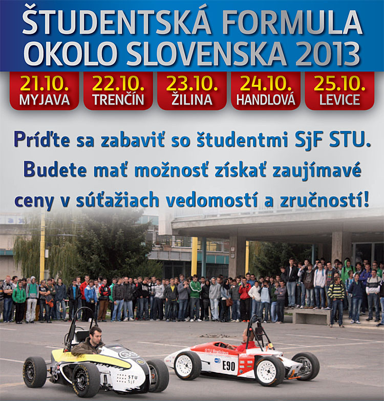 Tri rôzne formule vyrobili študenti Strojníckej fakulty Slovenskej technickej univerzity – benzínovú, elektrickú a úspornú s futuristickým dizajnom. V lete s nimi súťažili na okruhoch po celom svete, teraz s nimi prejdú Slovensko.